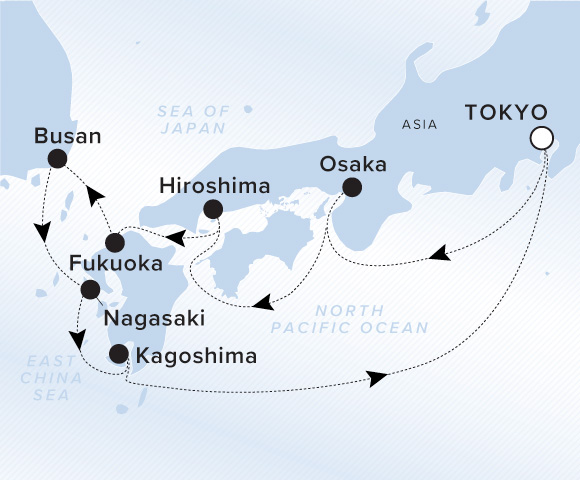 As you sail roundtrip from Tokyo, experience Osaka’s famed food culture in the popular Dotonbori district or Namba neighborhood, and gain moving insights into Hiroshima’s history at the Peace Memorial Garden. Enjoy panoramic views from Fukuoka Castle before delving into Busan’s Buddhist traditions in its celebrated temples. After exploring Japan’s southern shores from Nagasaki to Kagoshima, treat yourself to a massage at The Ritz-Carlton Spa® on your final day at sea.
